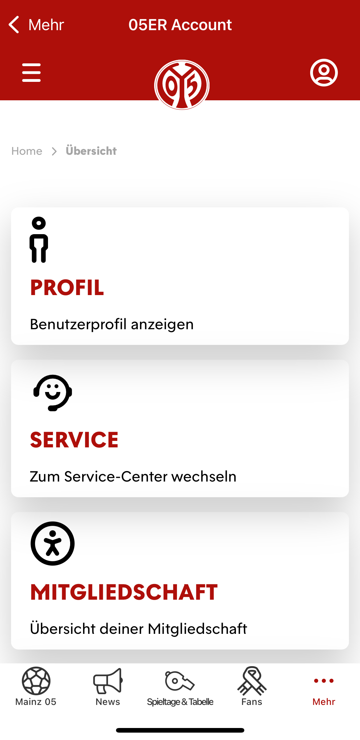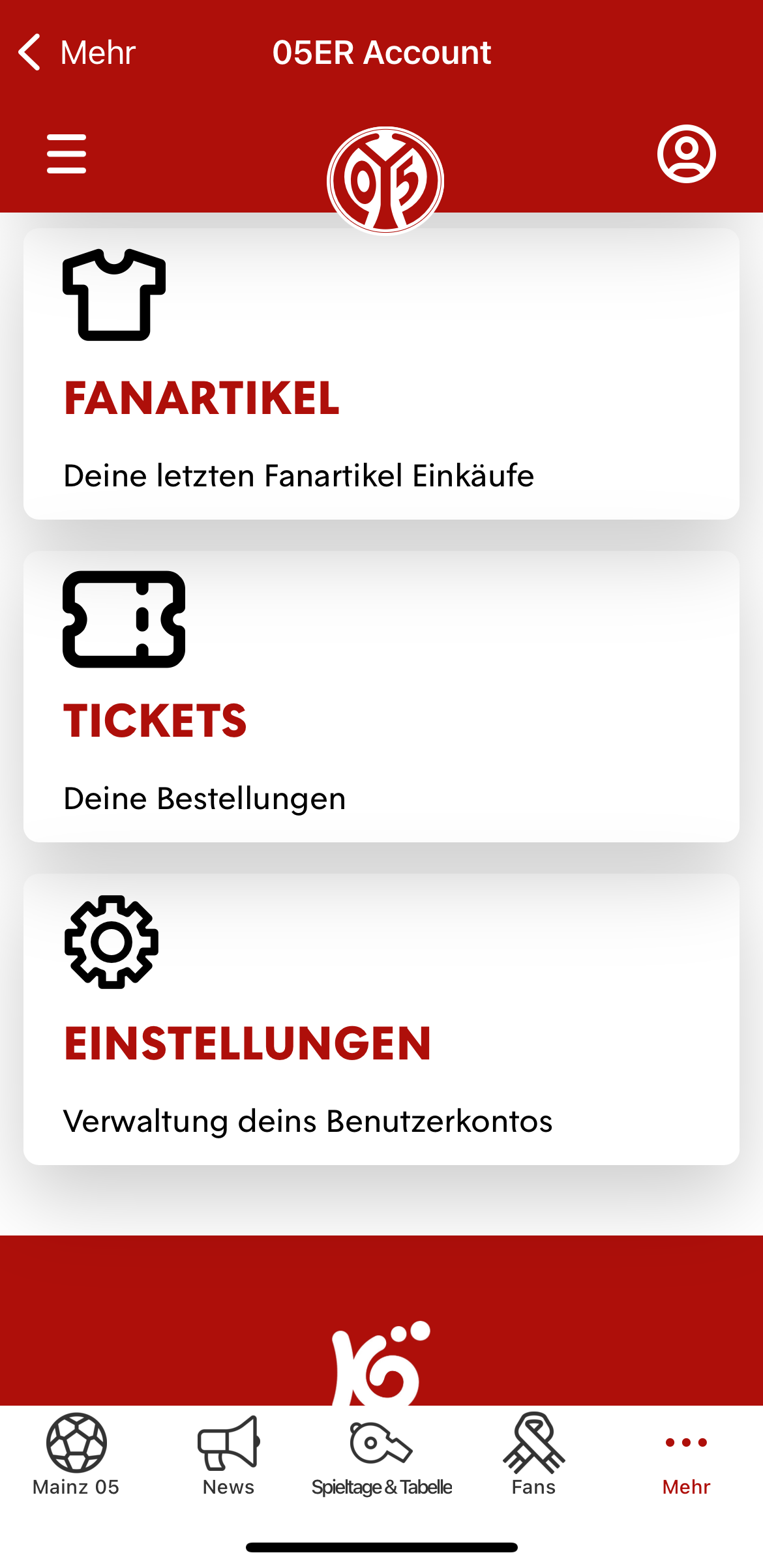 - Mitgliedschaft: Sieh dir deinen Mitgliedsstatus an oder werde direkt Mitglied bei Mainz 05.