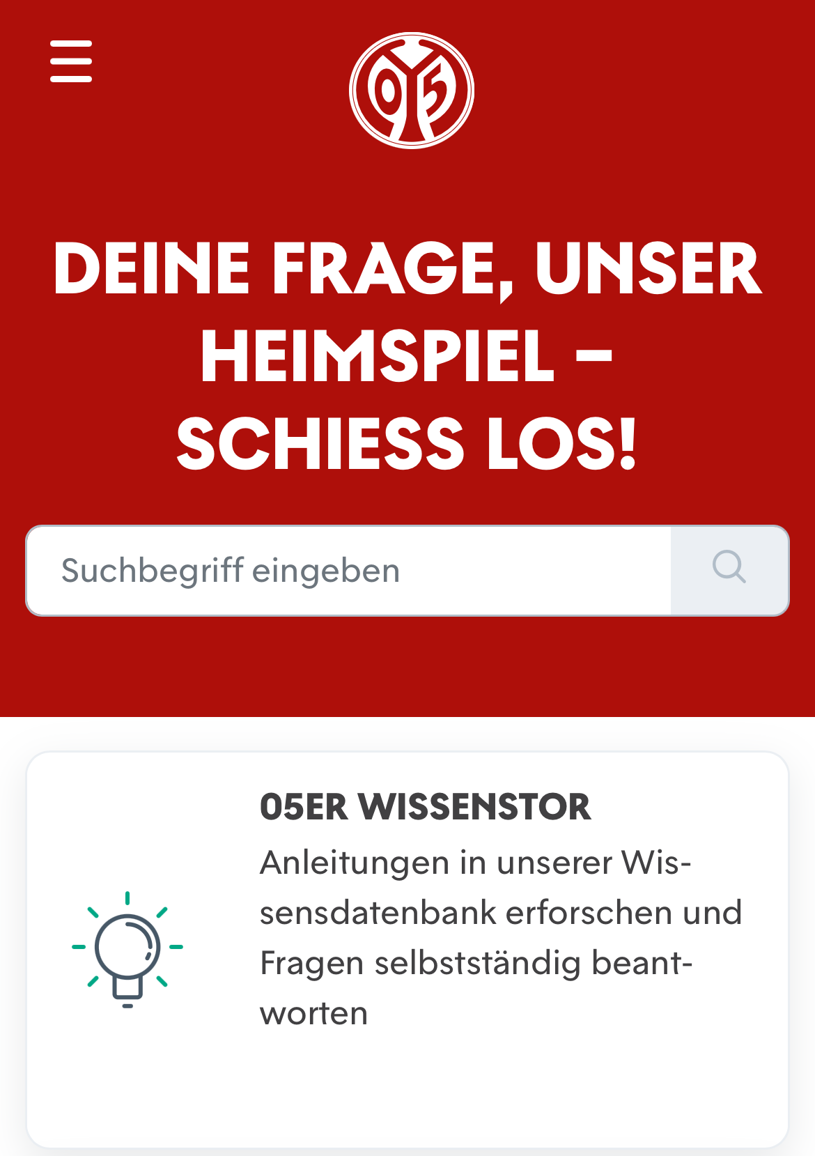 Das 05ER Wissenstor ist die neue Wissensdatenbank des 1. FSV Mainz 05. Hier findest du Antworten und hilfreiche Artikel zu Themen wie: Tickets, Mitgliedschaft, Fanartikel, Spieltag, MEWA ARENA, Fußballschule, Clubpartner … und vieles mehr